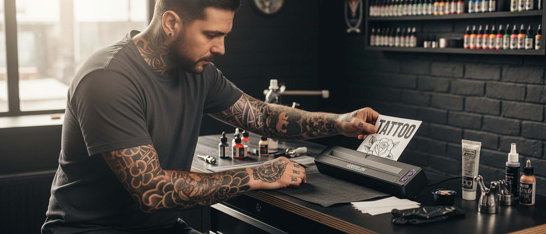 At the core this is a thermal printer. It works very well. If you're in the market, you should buy it. In more detail, you've probably never heard of this brand. GOSTELAW isn't exactly a household name. It is however fairly well known in the thermal printing industry and has been growing quite a bit over the last couple years. As for tattoo, that's a new hobby. Strangely I got into it even though I have no intention of ever tattooing a human, I do have a fascination in the art and enjoy practising my technique on latex sheets. Transferring stencils so you aren't drawing freehand is a technique that I am only just now getting into. This printer has allowed me to do that quite nicely. It prints with sharpness and clarity that is in excess of my skill, so that's a positive. If you're looking for a simple thermal printer to create transfers this will work for you. I would also suggest getting some thermal paper so you can use it as a portable printer as well, But keep in mind the limitations of thermal printing and longevity. Given the price, it's hard not to recommend.